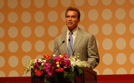 Schwarzenegger, now governor of California, was in Shanghai to help promote the Special Olympics, and he attended a press conference in the convention center while 22 teams each in the Bermuda Bowl, Venice Cup and Senior Bowl were competing for the eight top spots in their respective events.